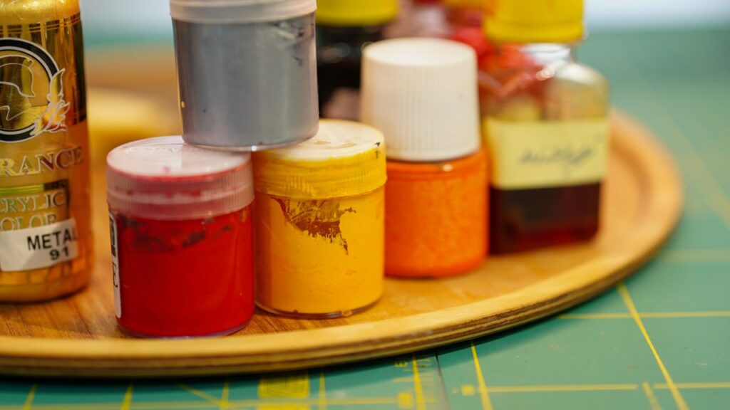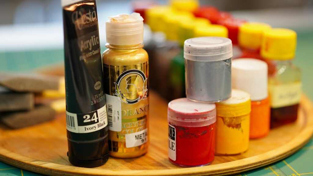 - رنگهای اکریلیک: این رنگها برای نقاشی و طراحی روی پارچه بسیار مناسب هستند. بعد از خشک شدن، مقاوم به شستشو و محو شدن هستند. اکریلیکها به صورت مستقیم یا با ترکیب با مدیومهای مخصوص پارچه قابل استفاده هستند.