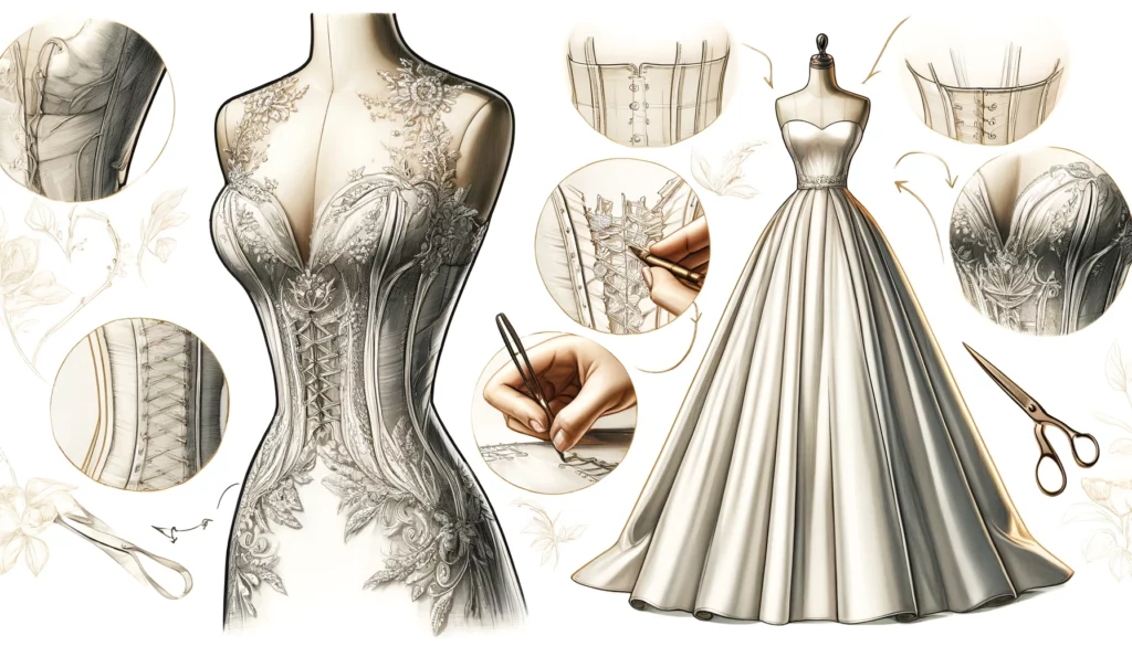 توجه به جزئیات و طراحی در فنر دوزی لباس های شب و عروس