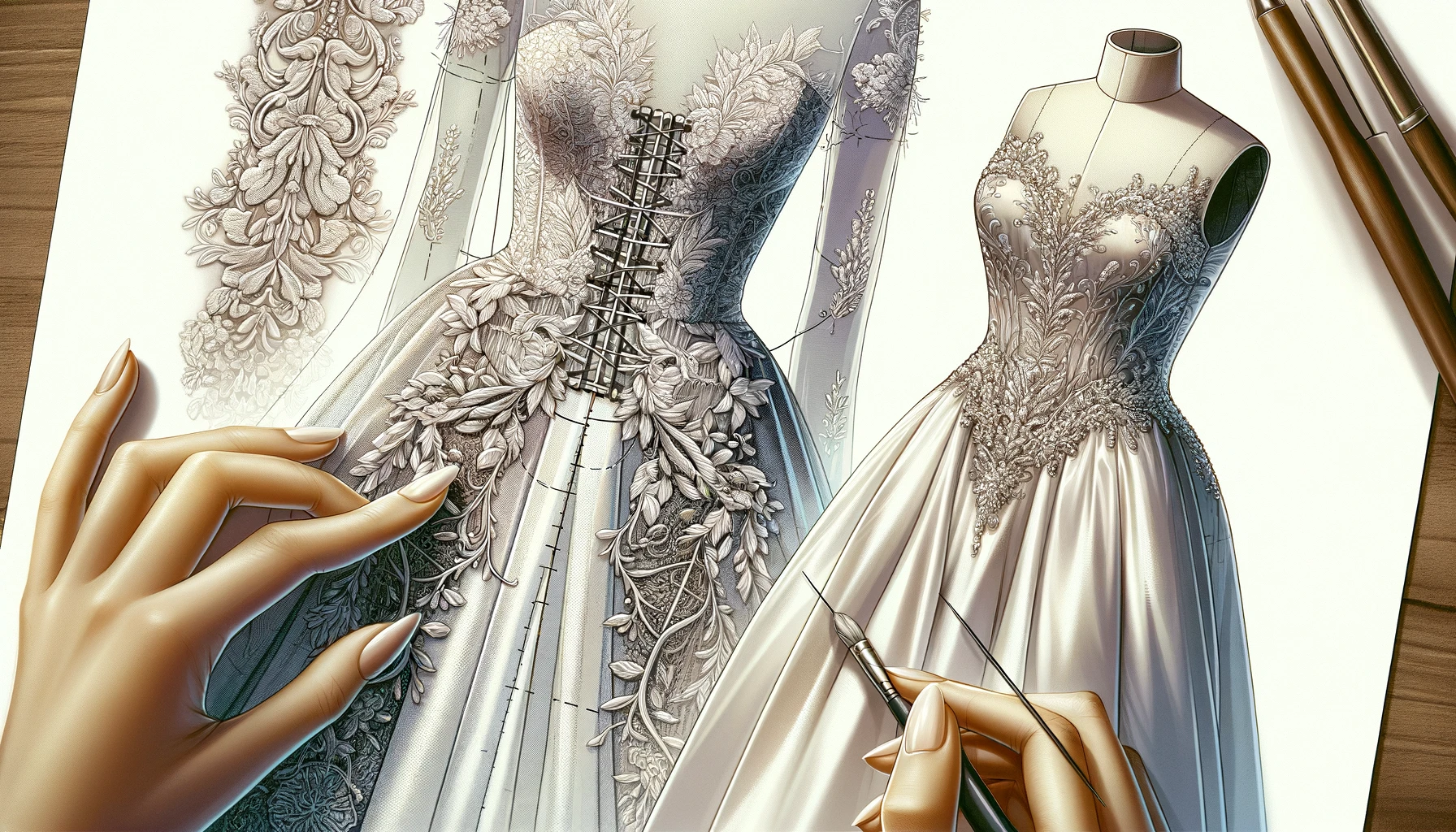 توجه به جزئیات و طراحی در فنر دوزی لباس های شب و عروس
