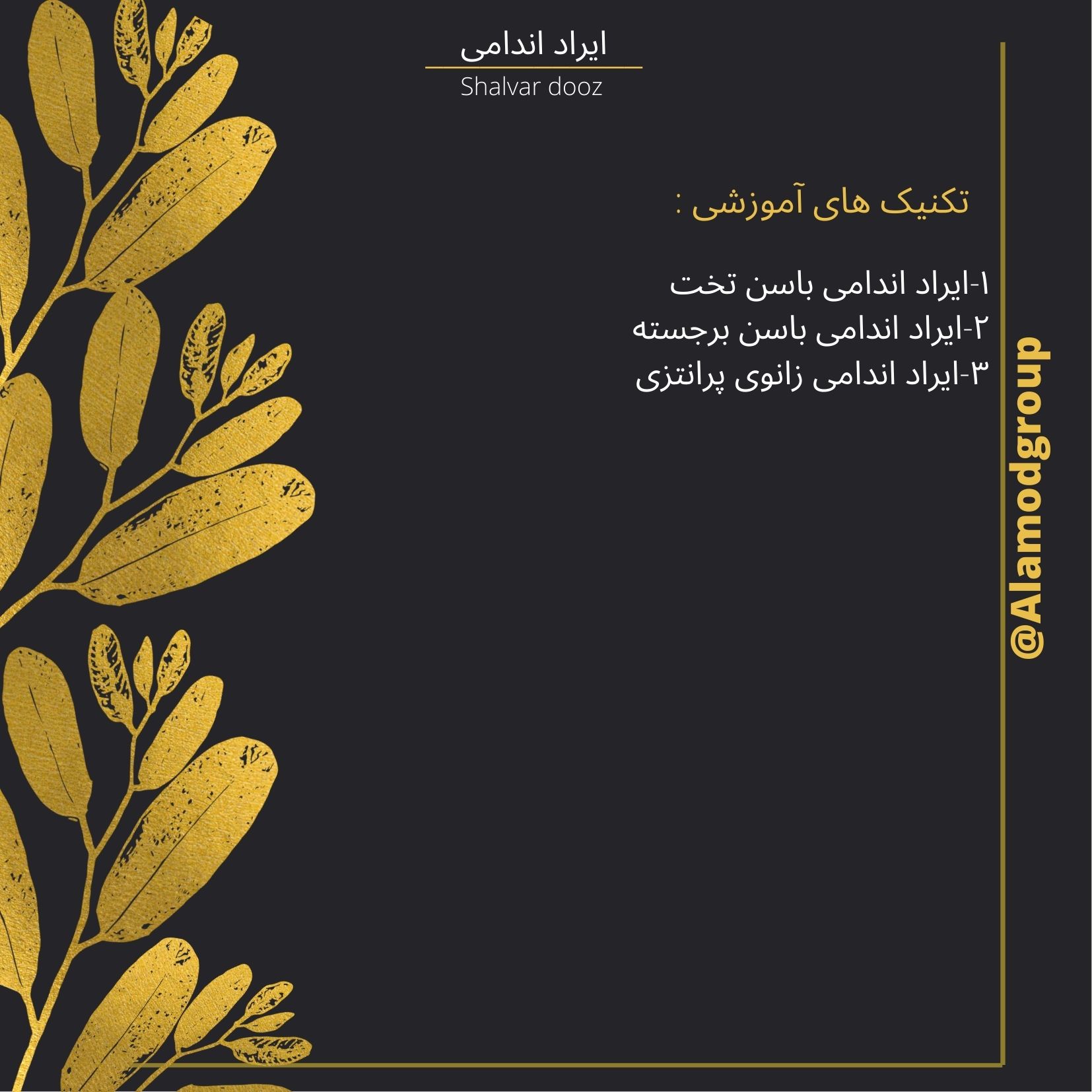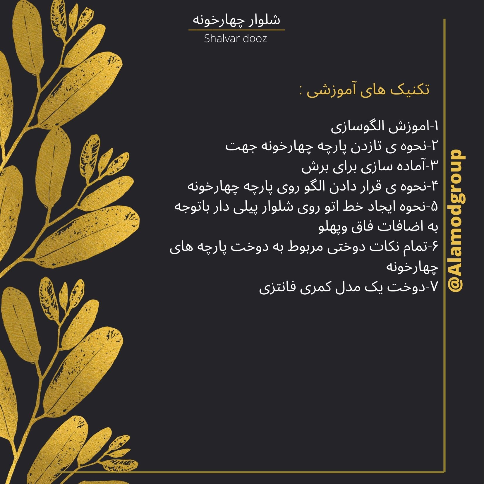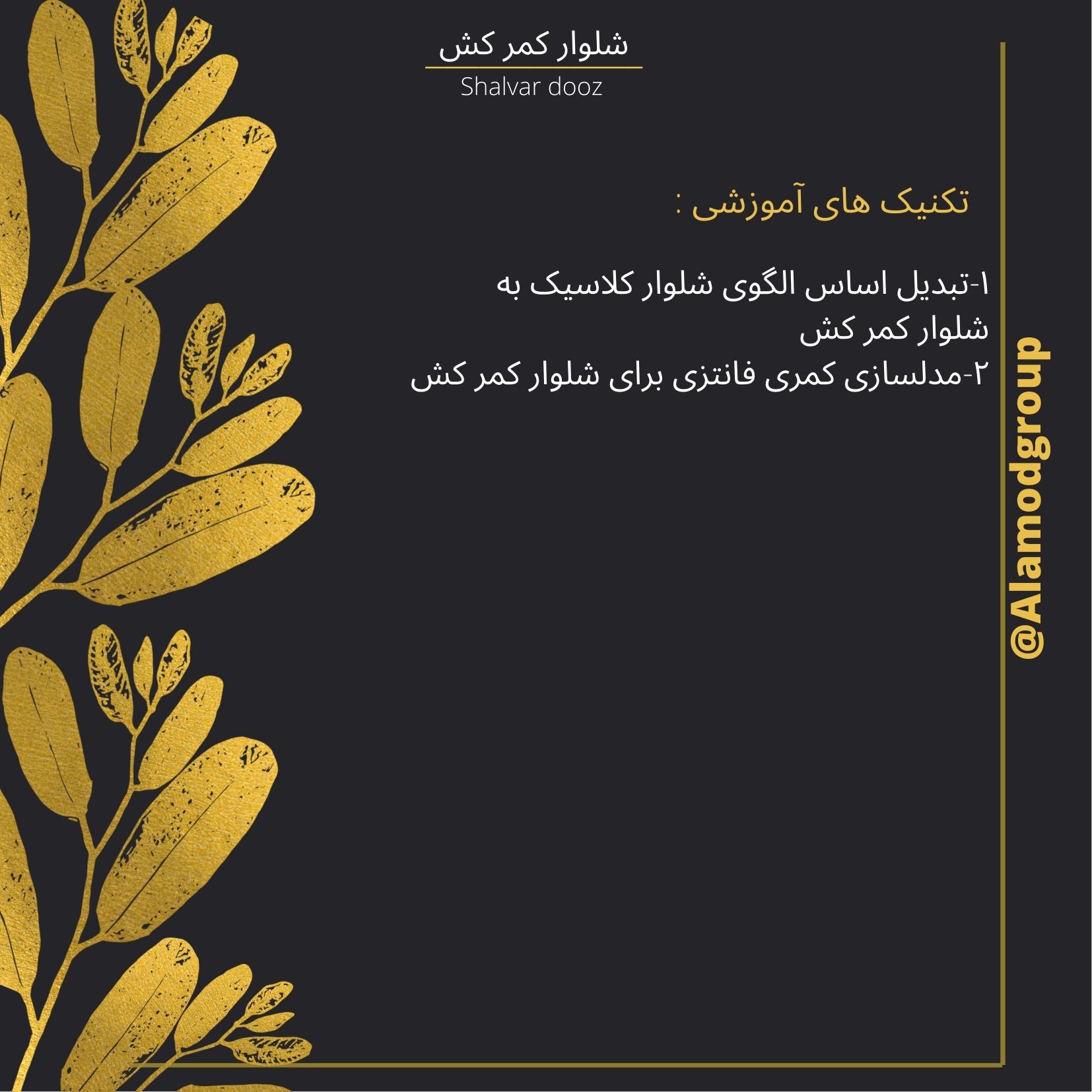 سلام استاد جان اگر امکانش هست عکس مدل های اموزشی شلوارها رو توی سایت بارگذاری کنید که برای استفاده از مدل کارها سریعتر دسترسی داشته باشیم . سپاسگزارم
